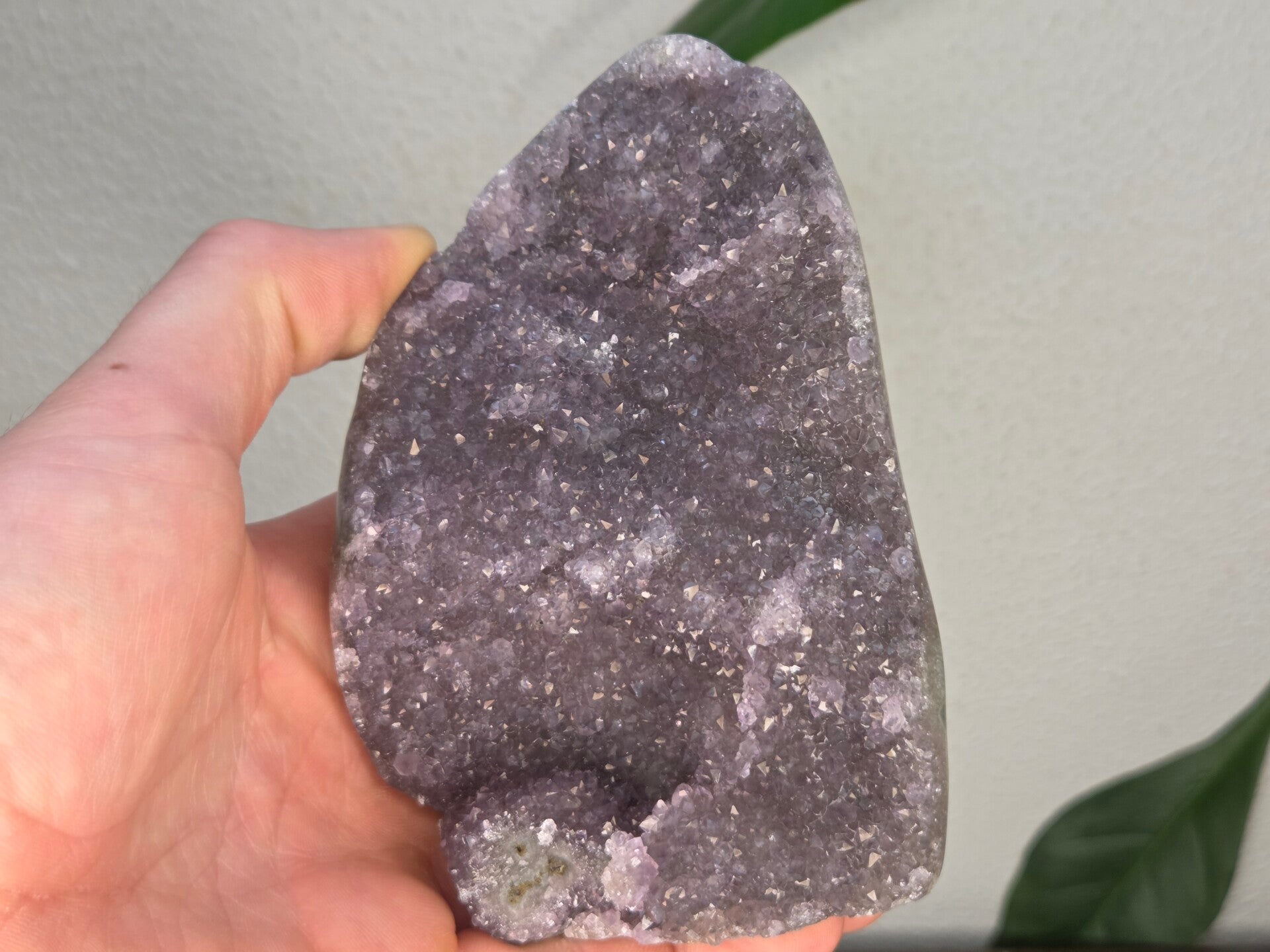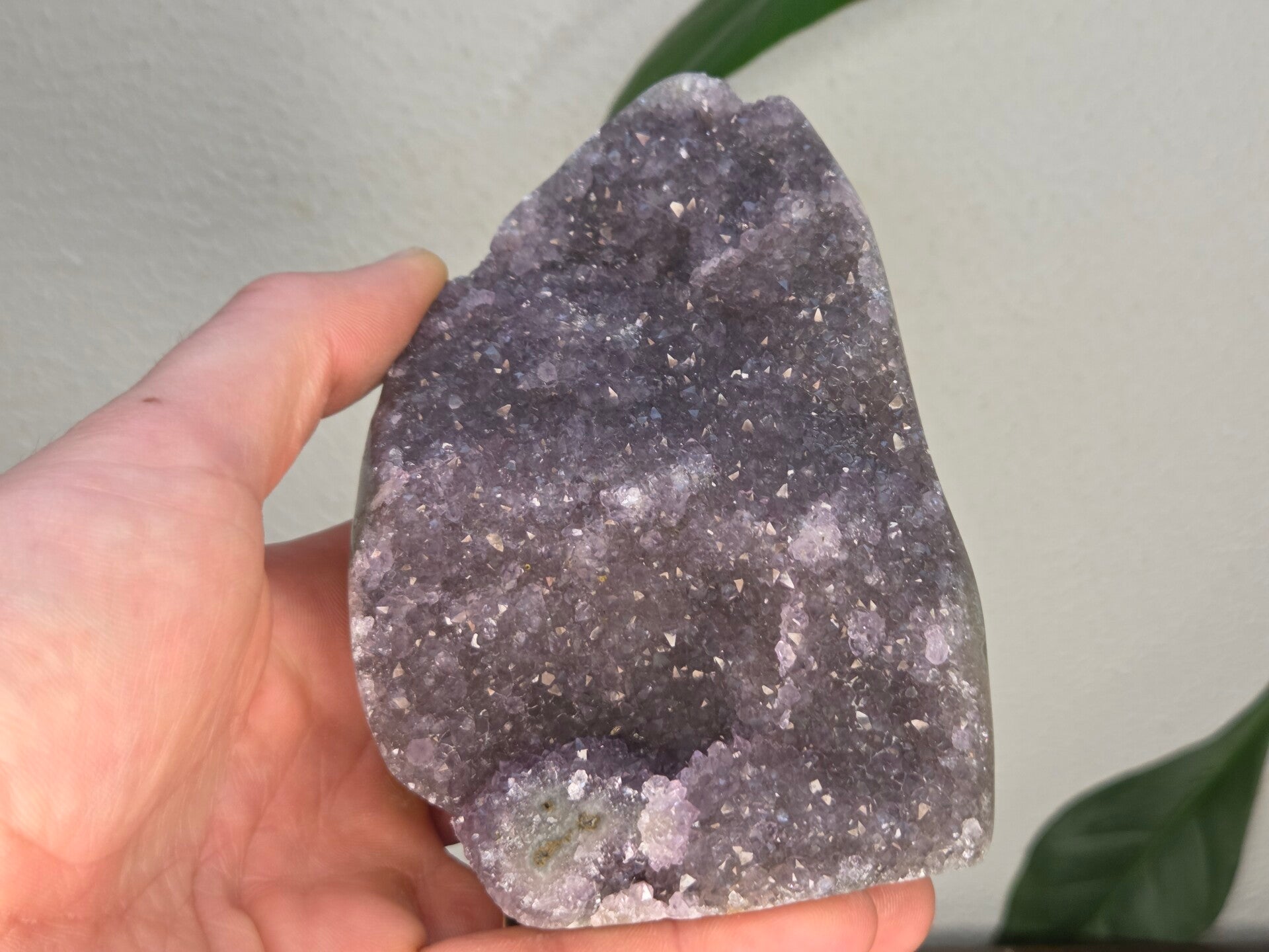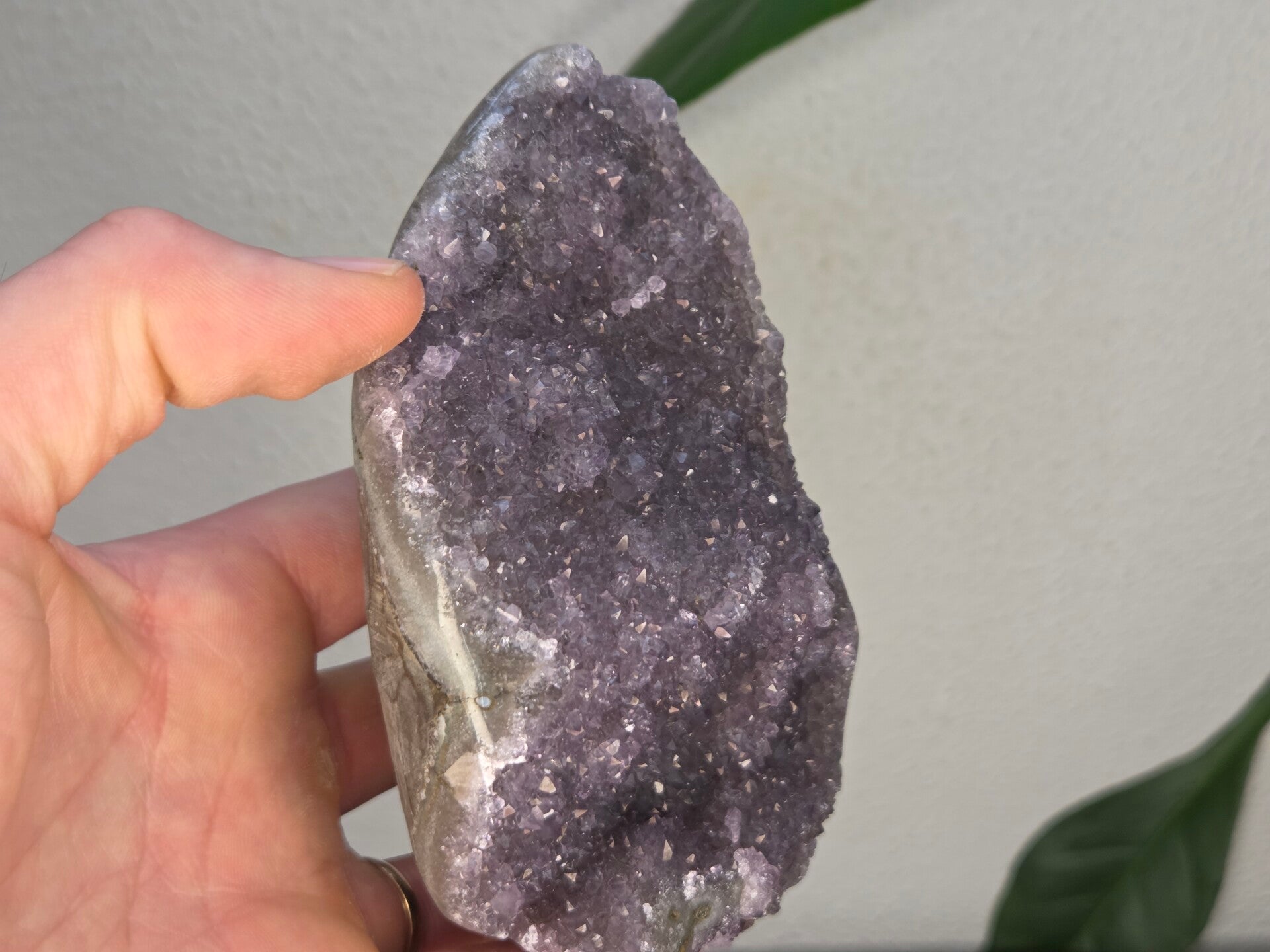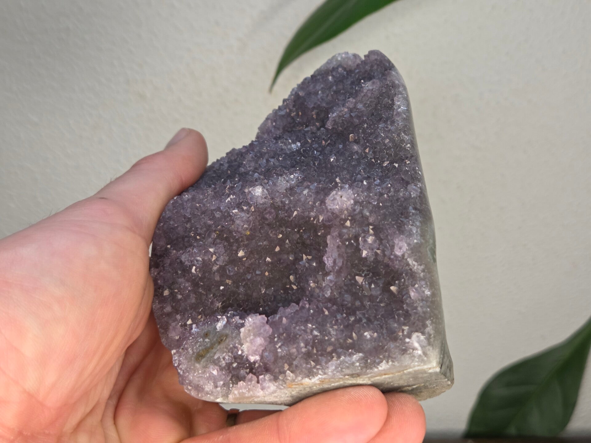 een amethist uit brazilië van 12,2 cm bij 8,4 cm bij 5 cm