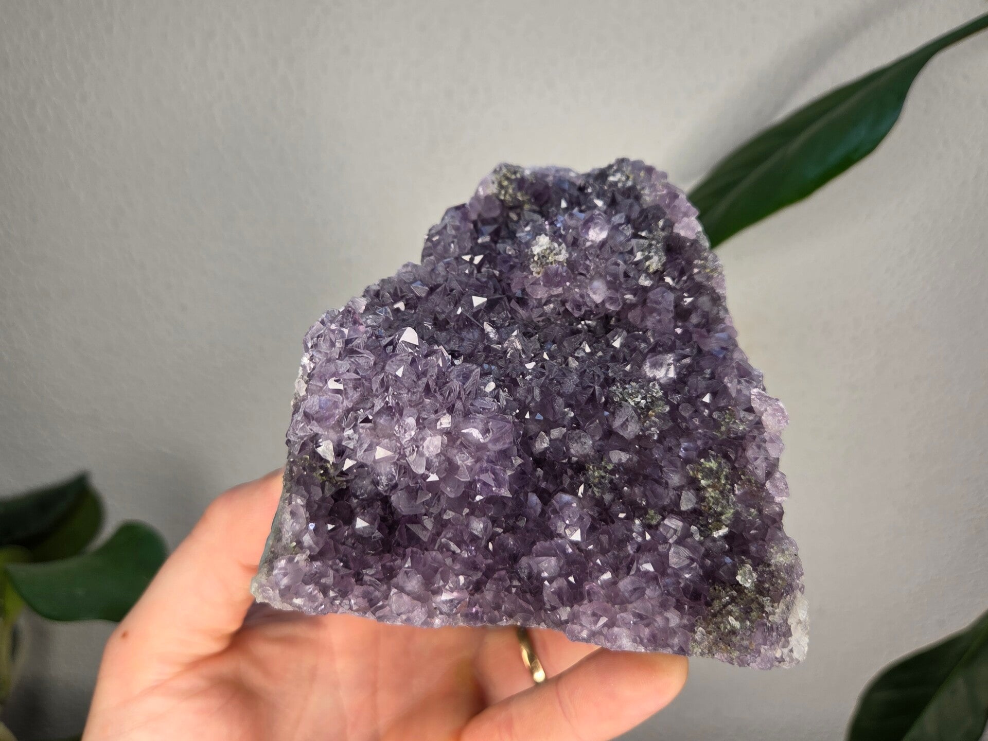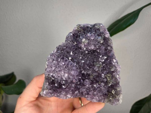 een amethist uit brazilië van 11,2 cm bij 10,3 cm bij 8,2 cm