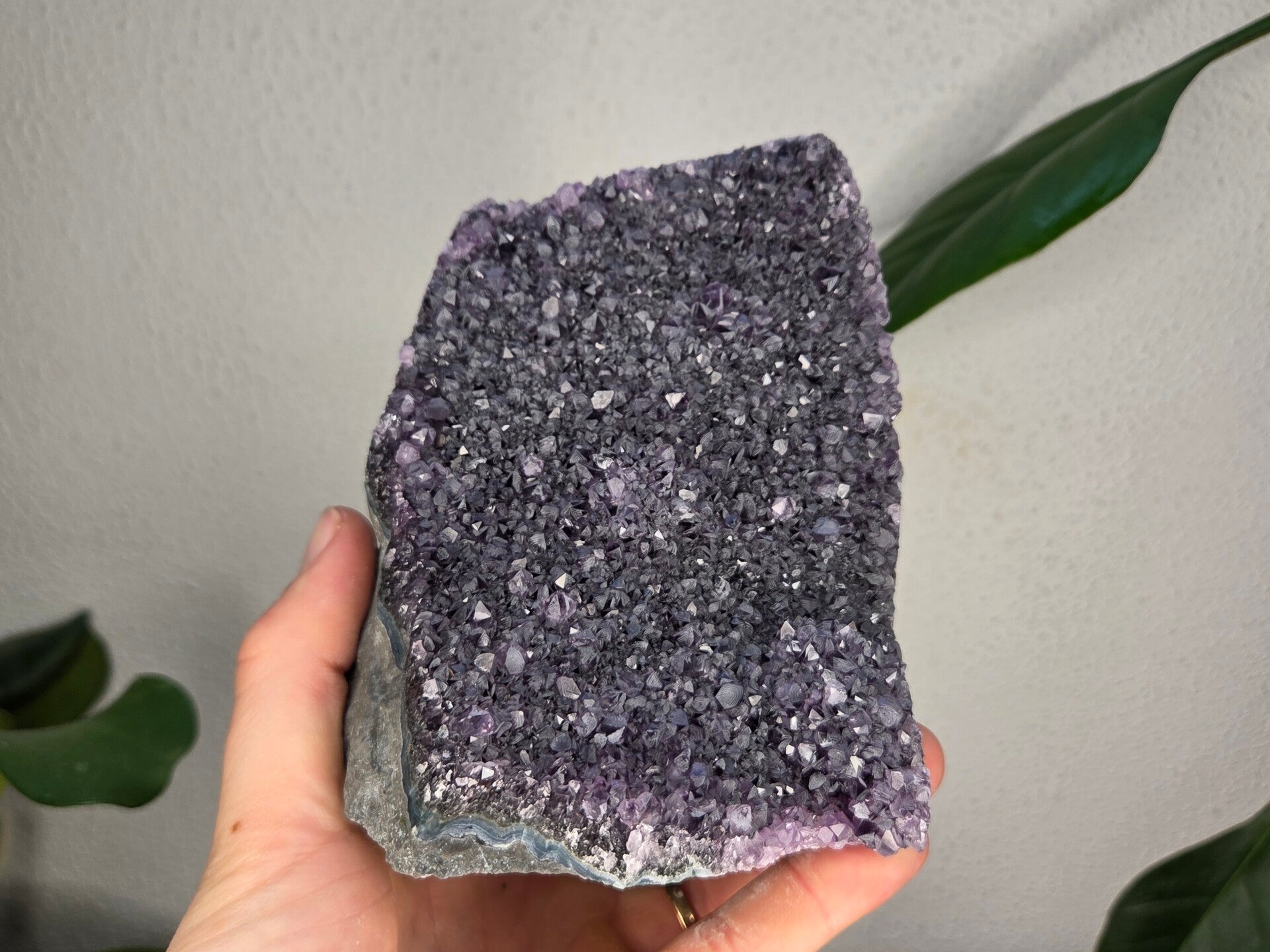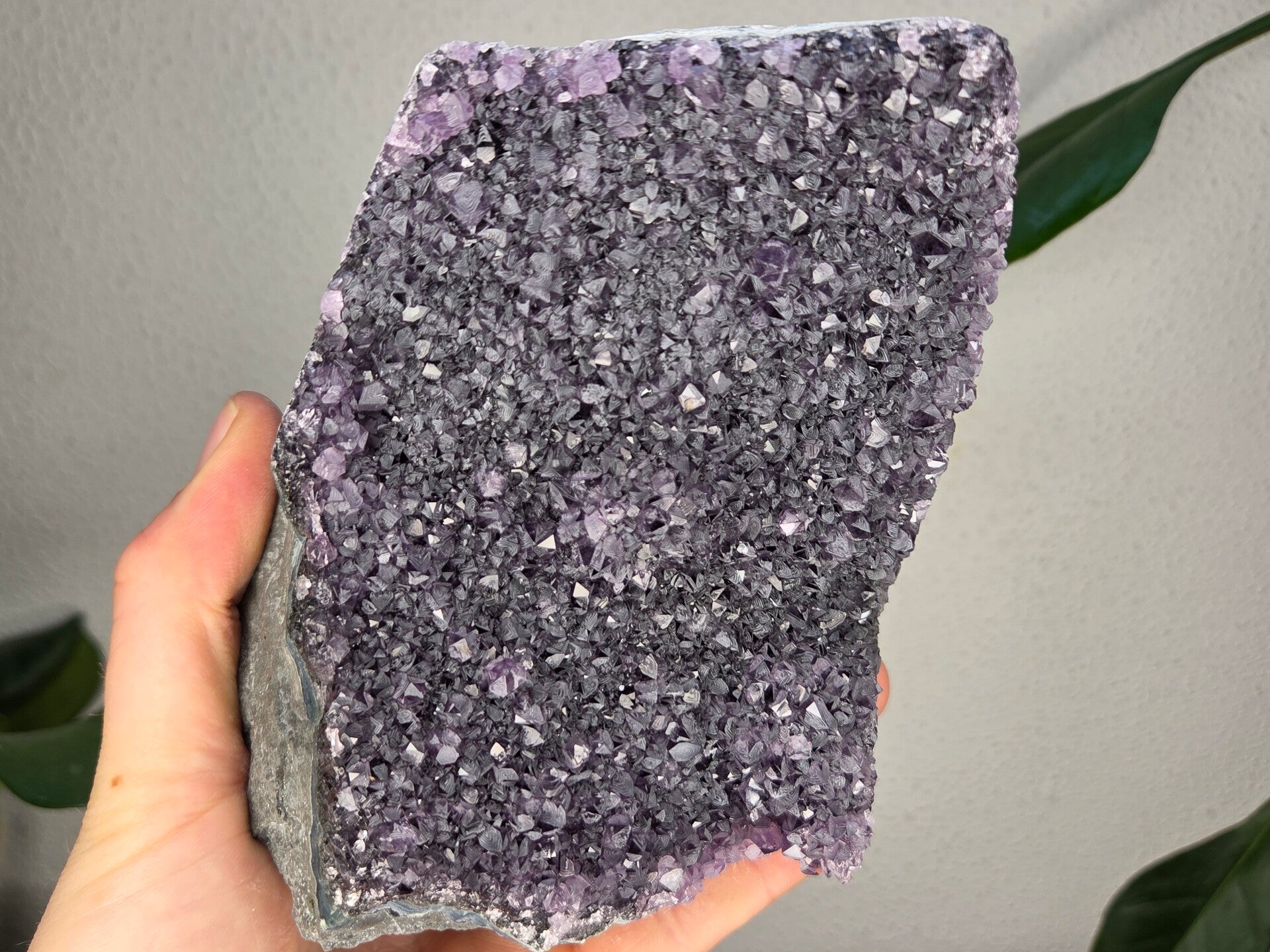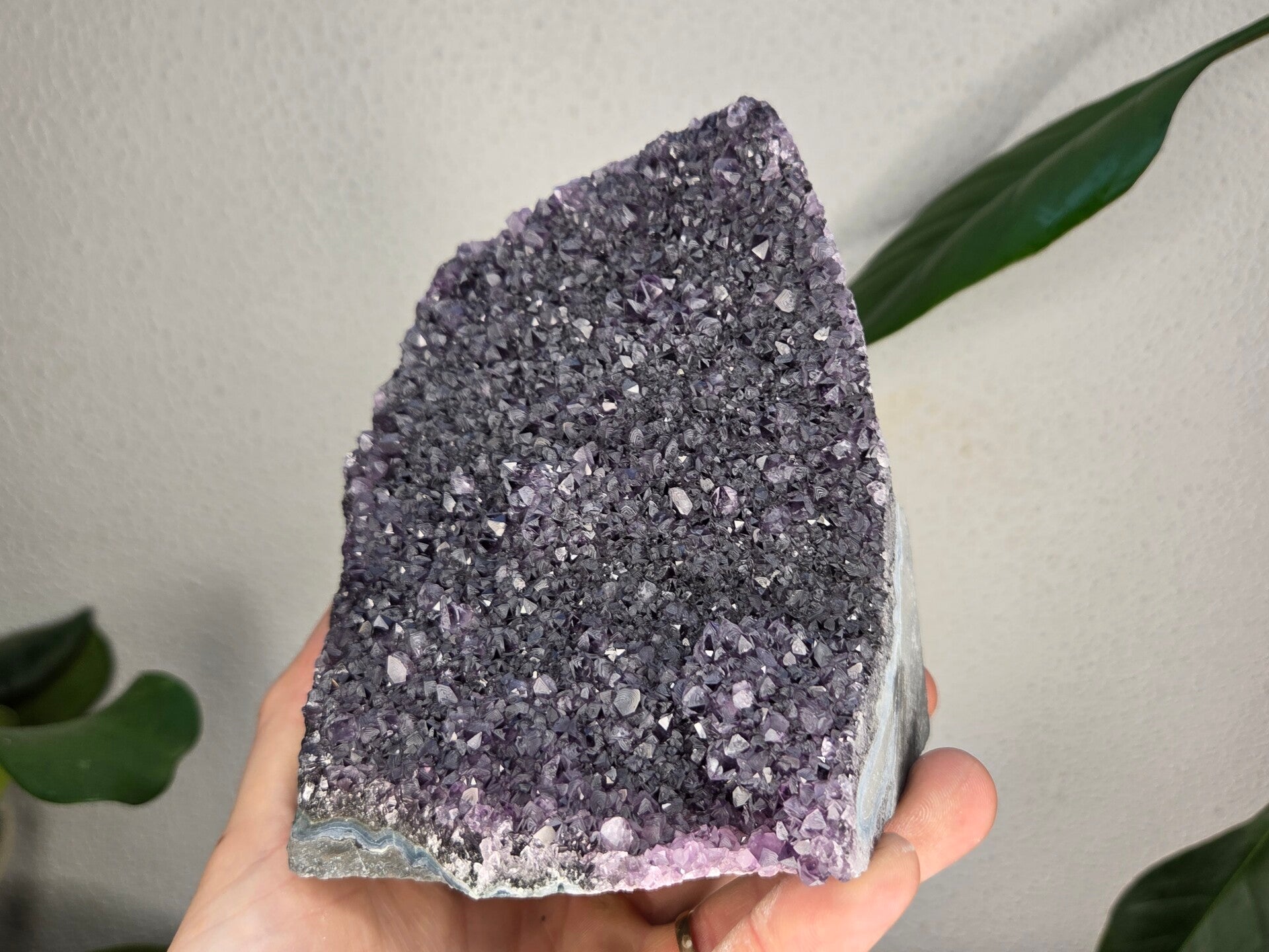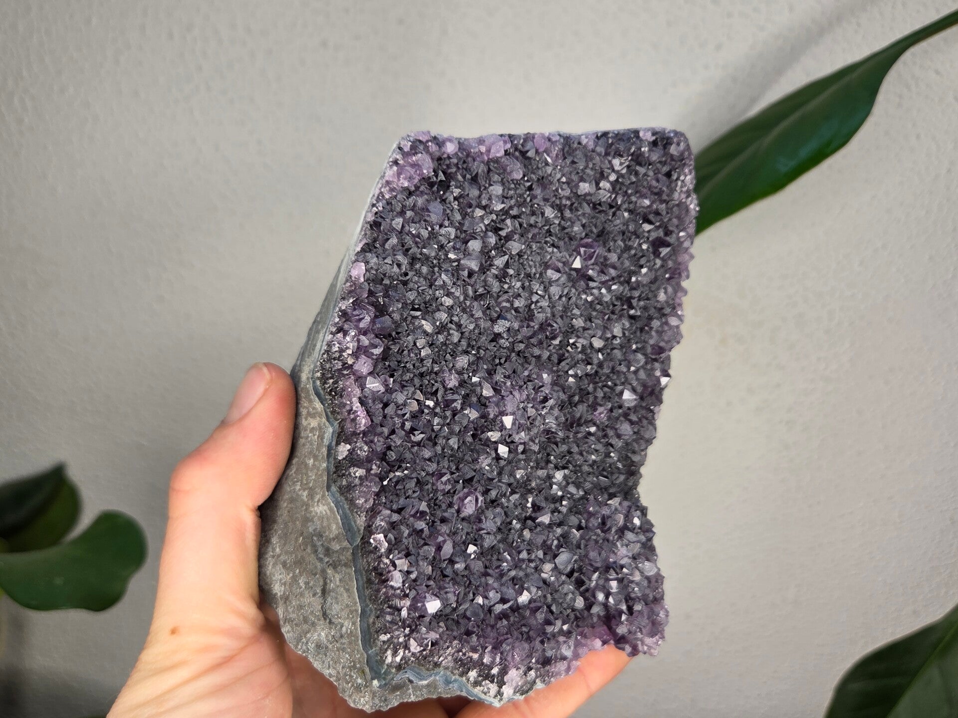 een amethist uit brazilië van 12,4 cm bij 11,2 cm bij 9,8 cm