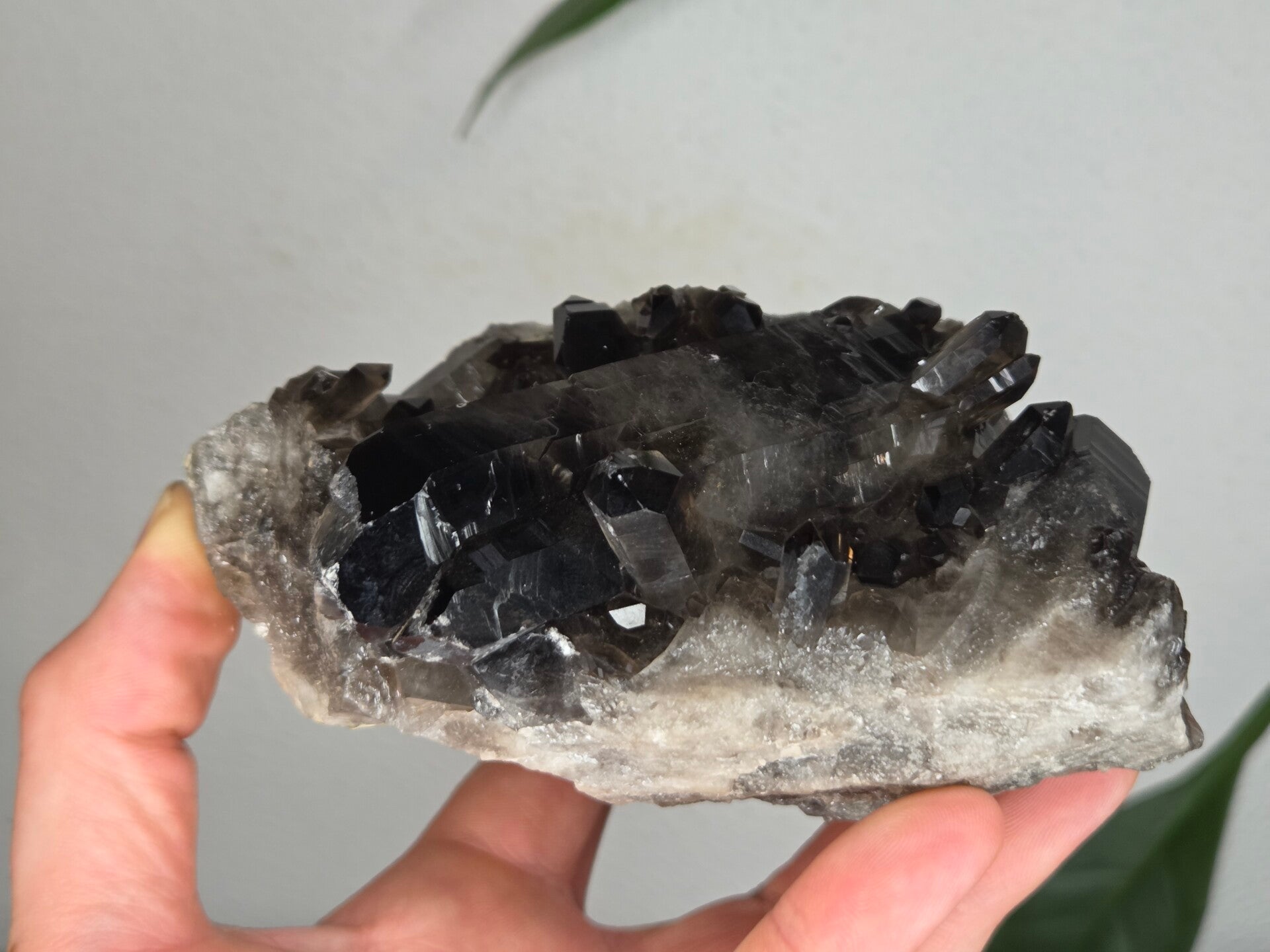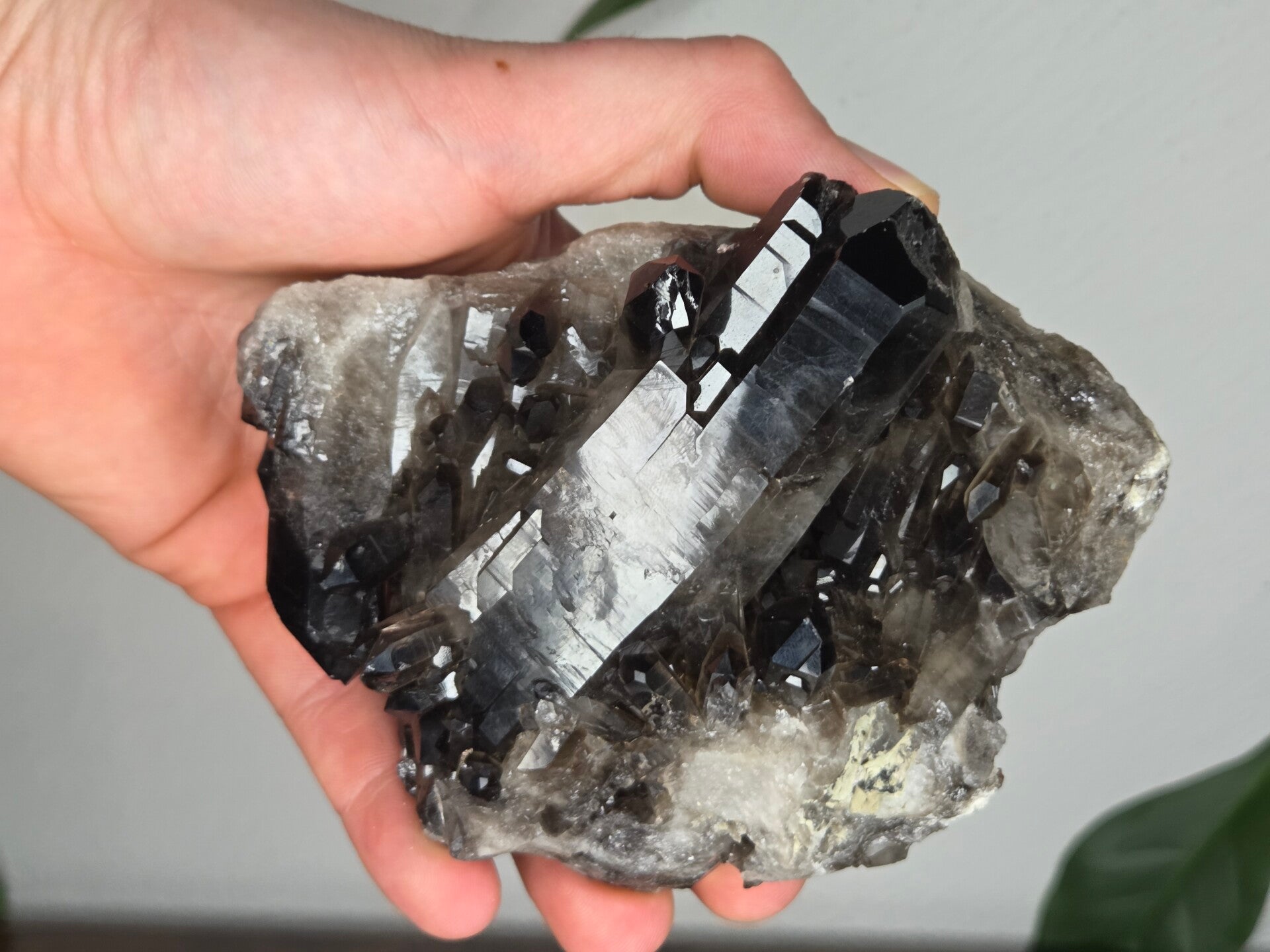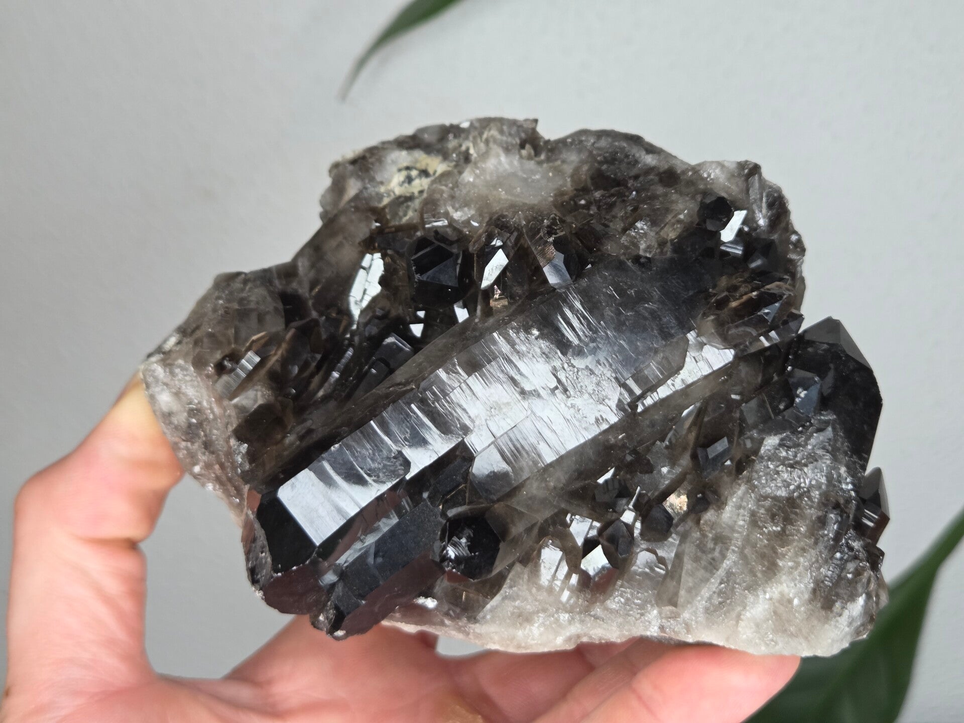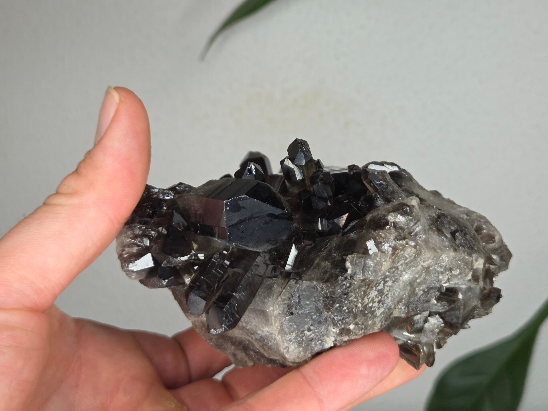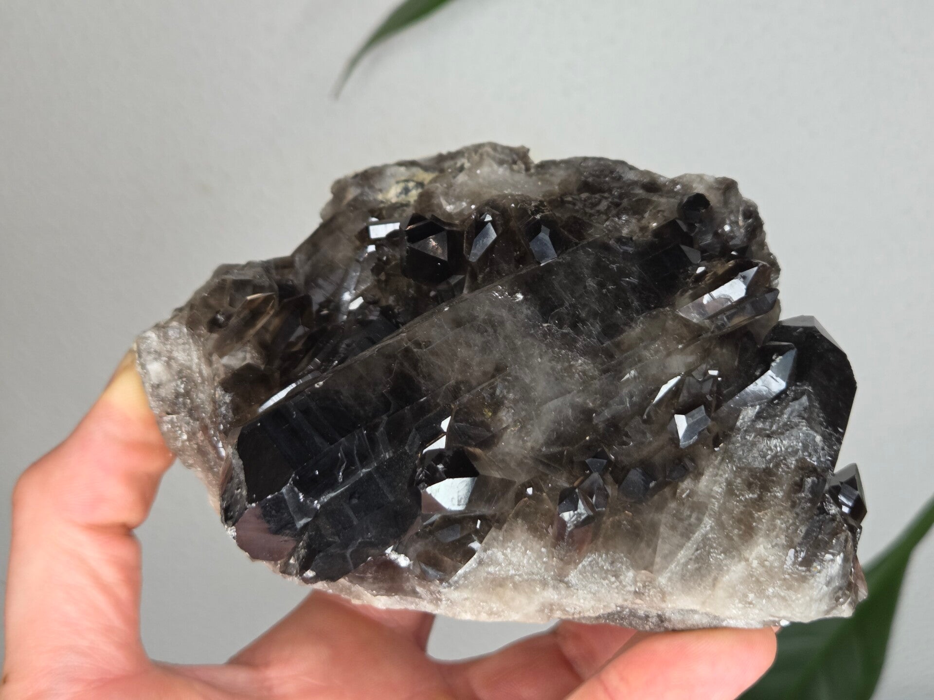 een glanzende natuurlijke rookkwarts uit brazilië van 12,3 cm bij 9,2 cm bij 6,7 cm