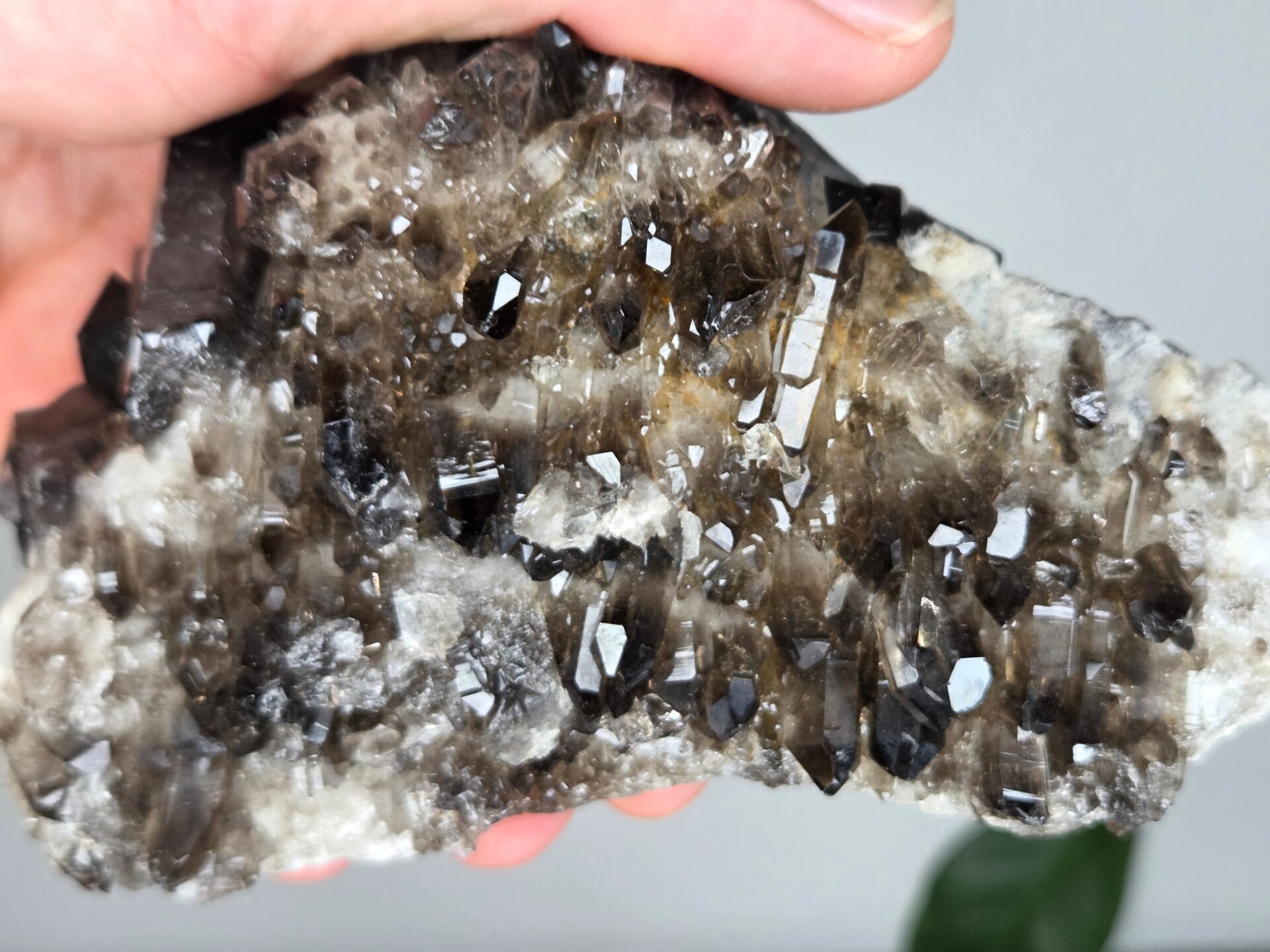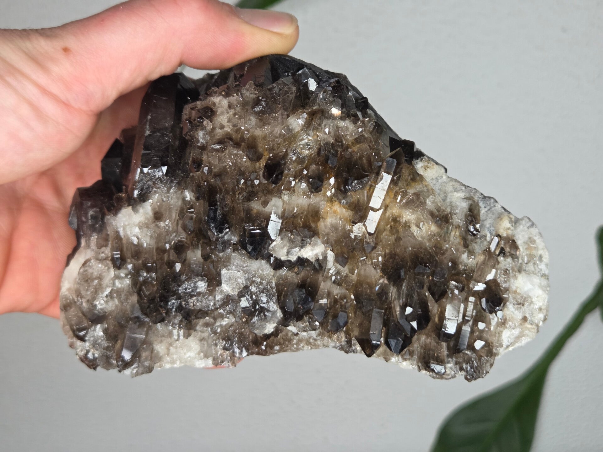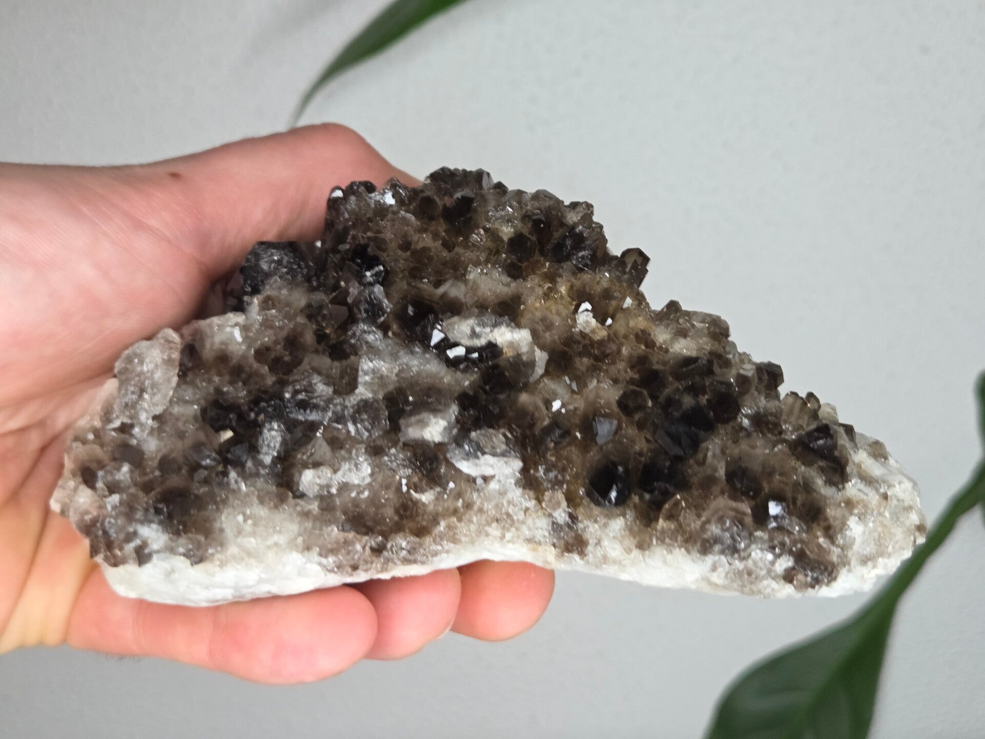 een glanzende natuurlijke rookkwarts uit brazilië van 13,1 cm bij 8,2 cm bij 7 cm