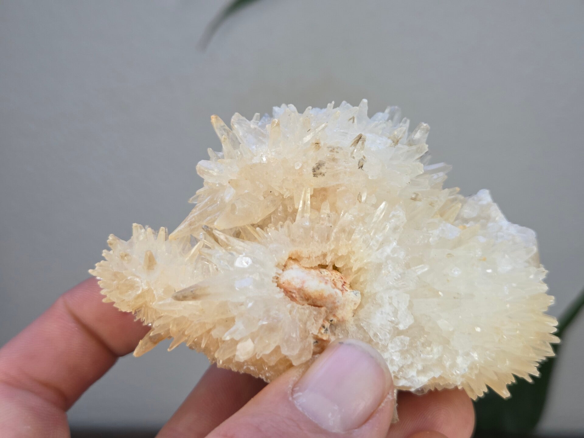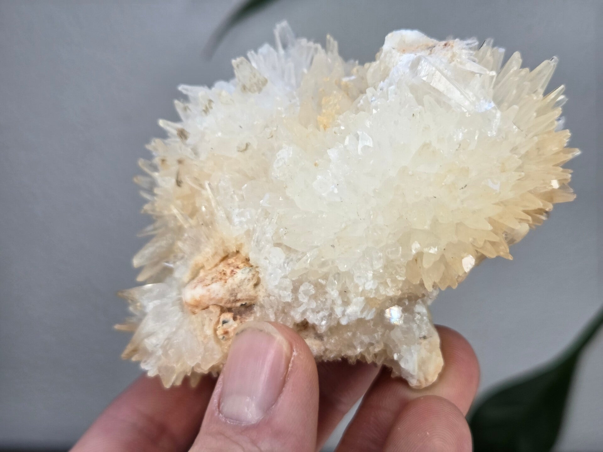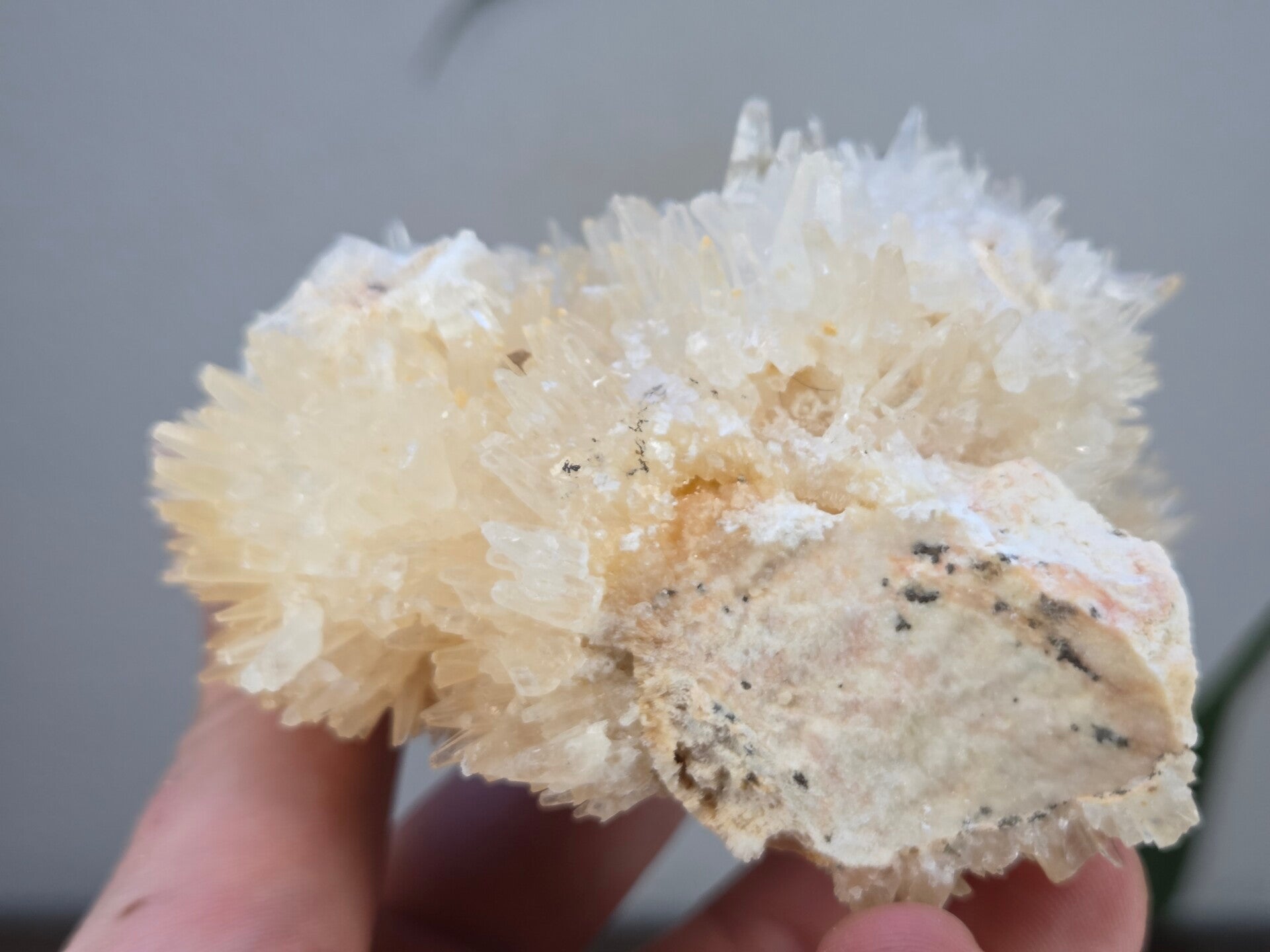 een stukje dogtooth calciet uit java, indonesië van 10,6 cm bij 8,1 cm bij 6,1 cm