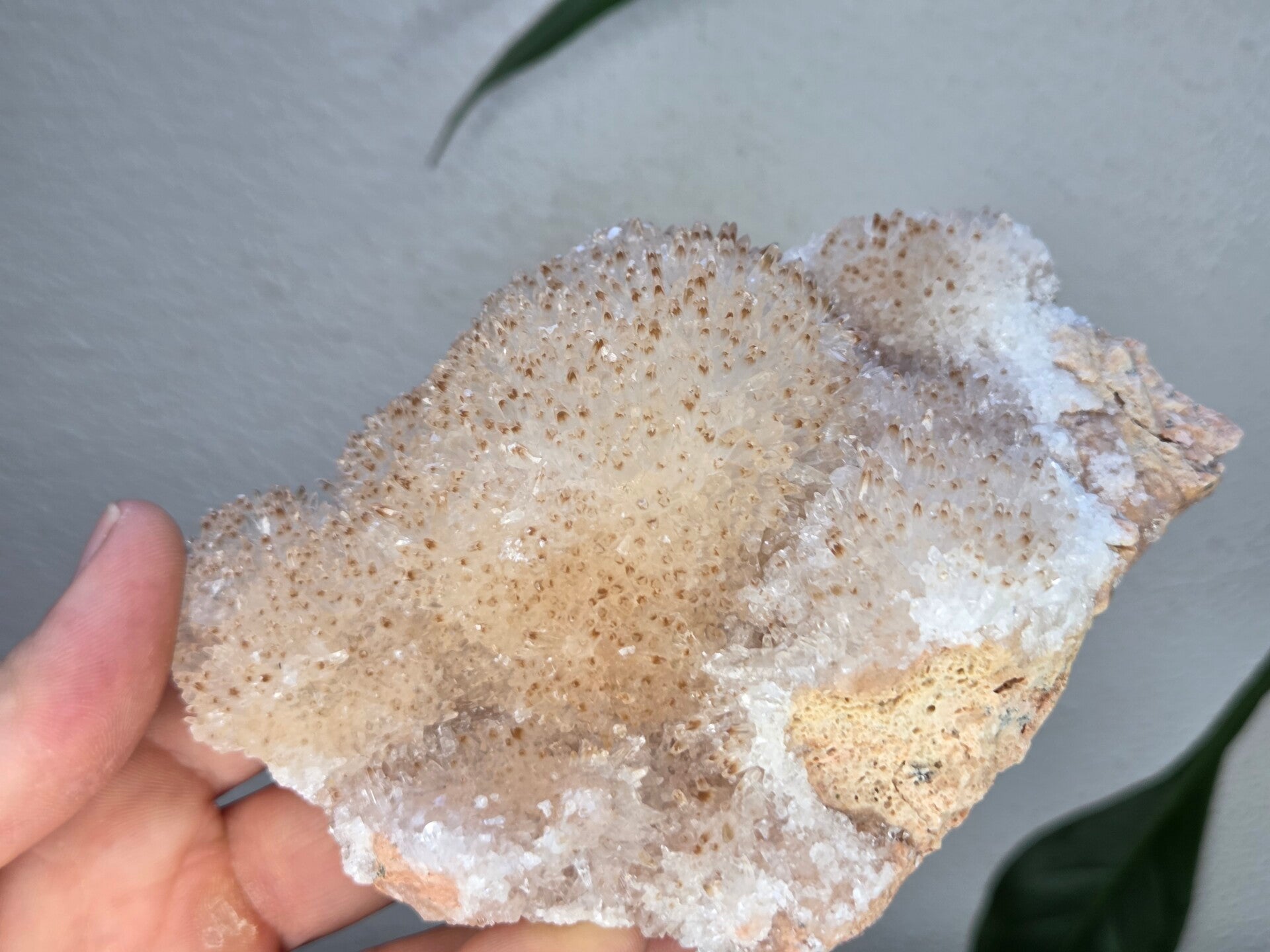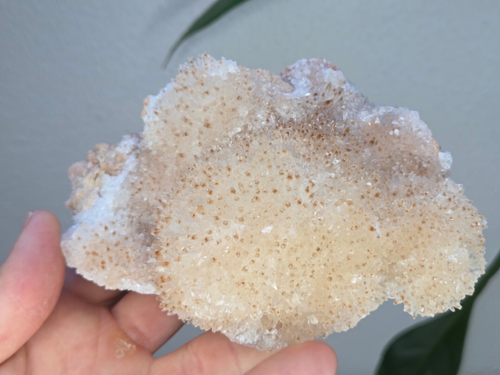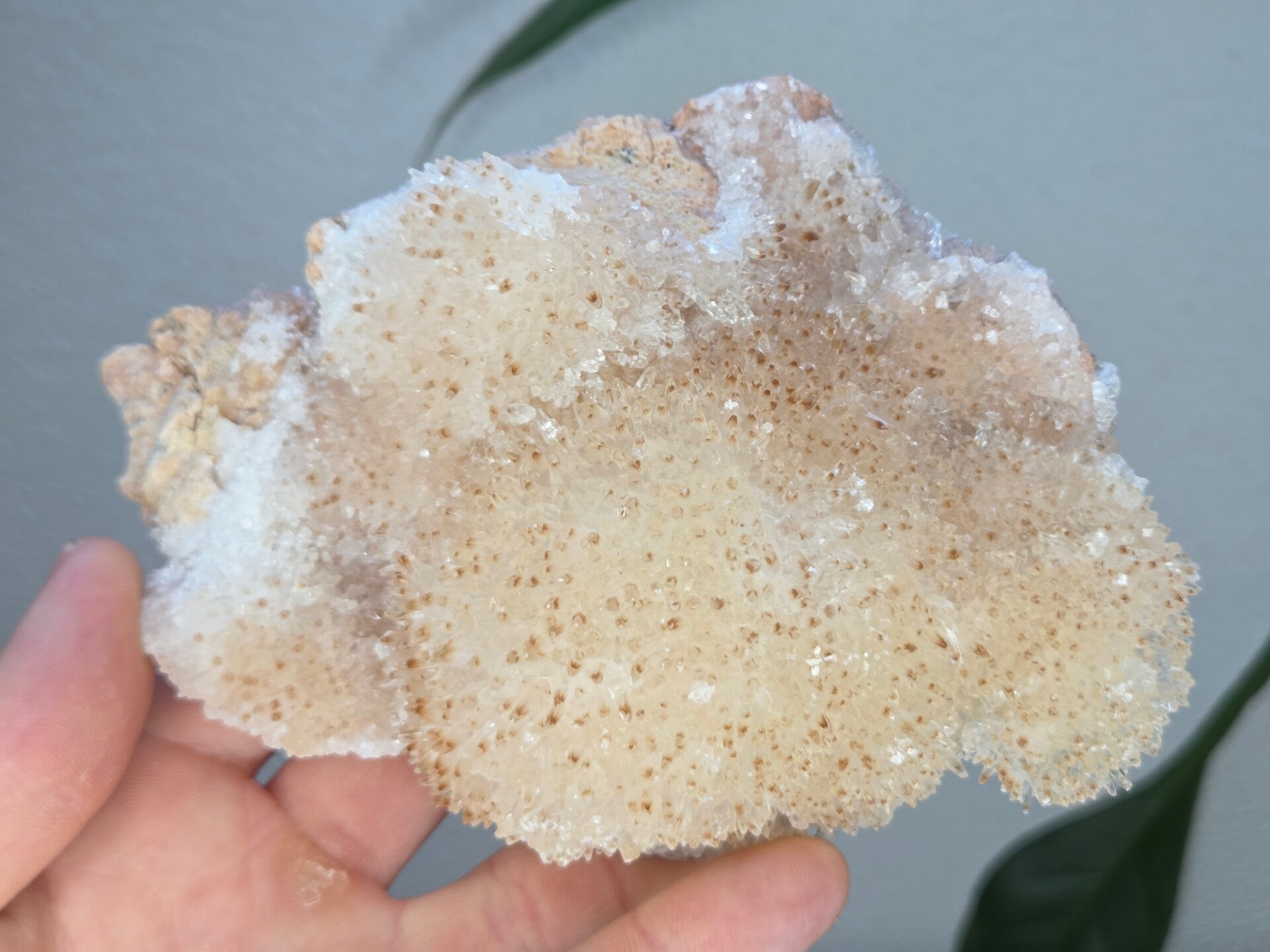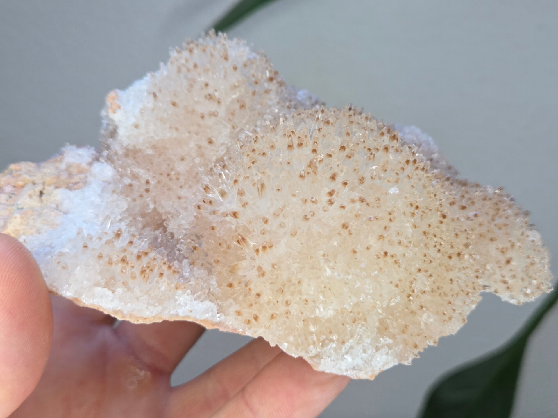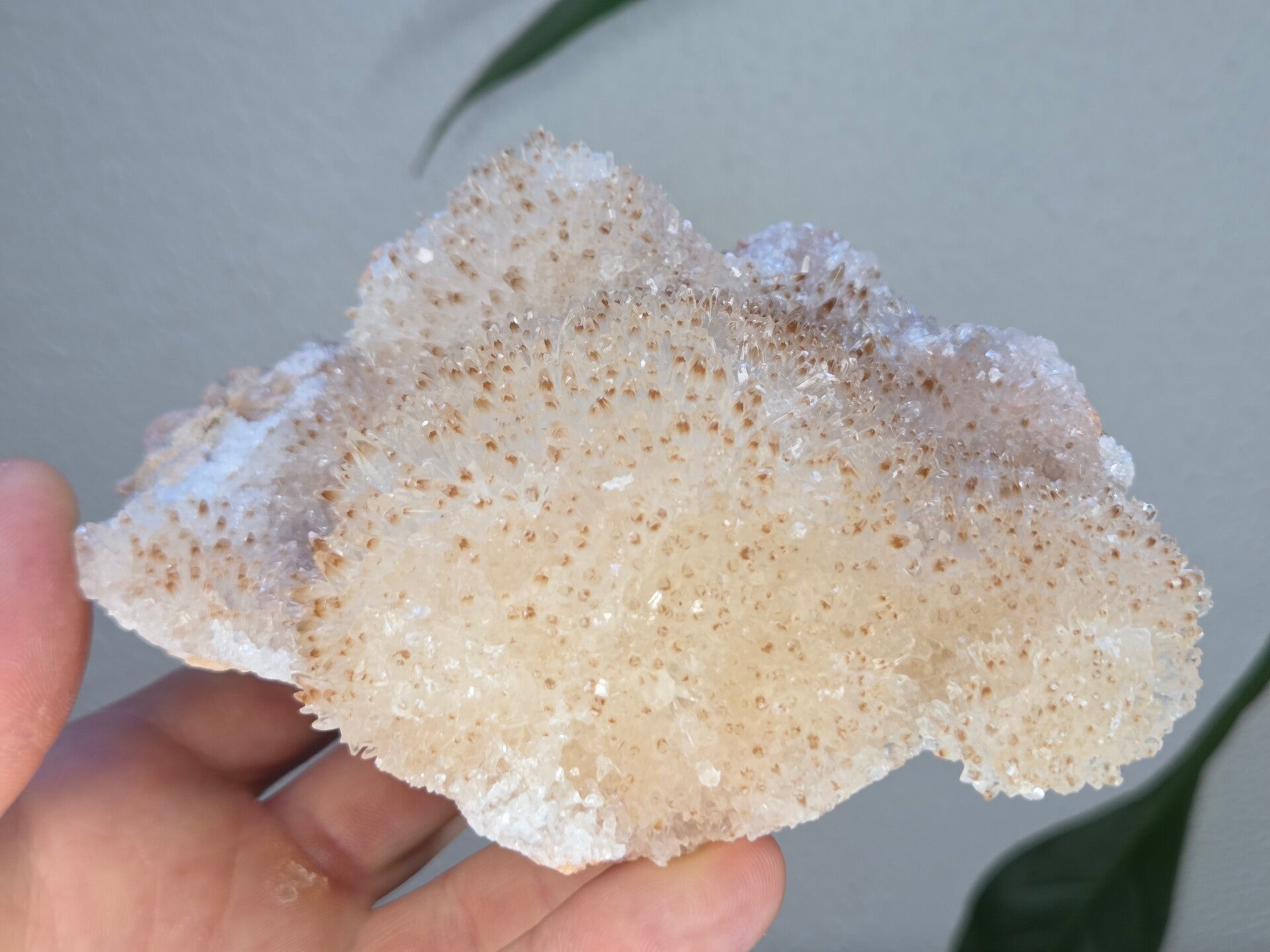 een stukje dogtooth calciet uit java, indonesië van 14,5 cm bij 10,2 cm bij 5,2 cm