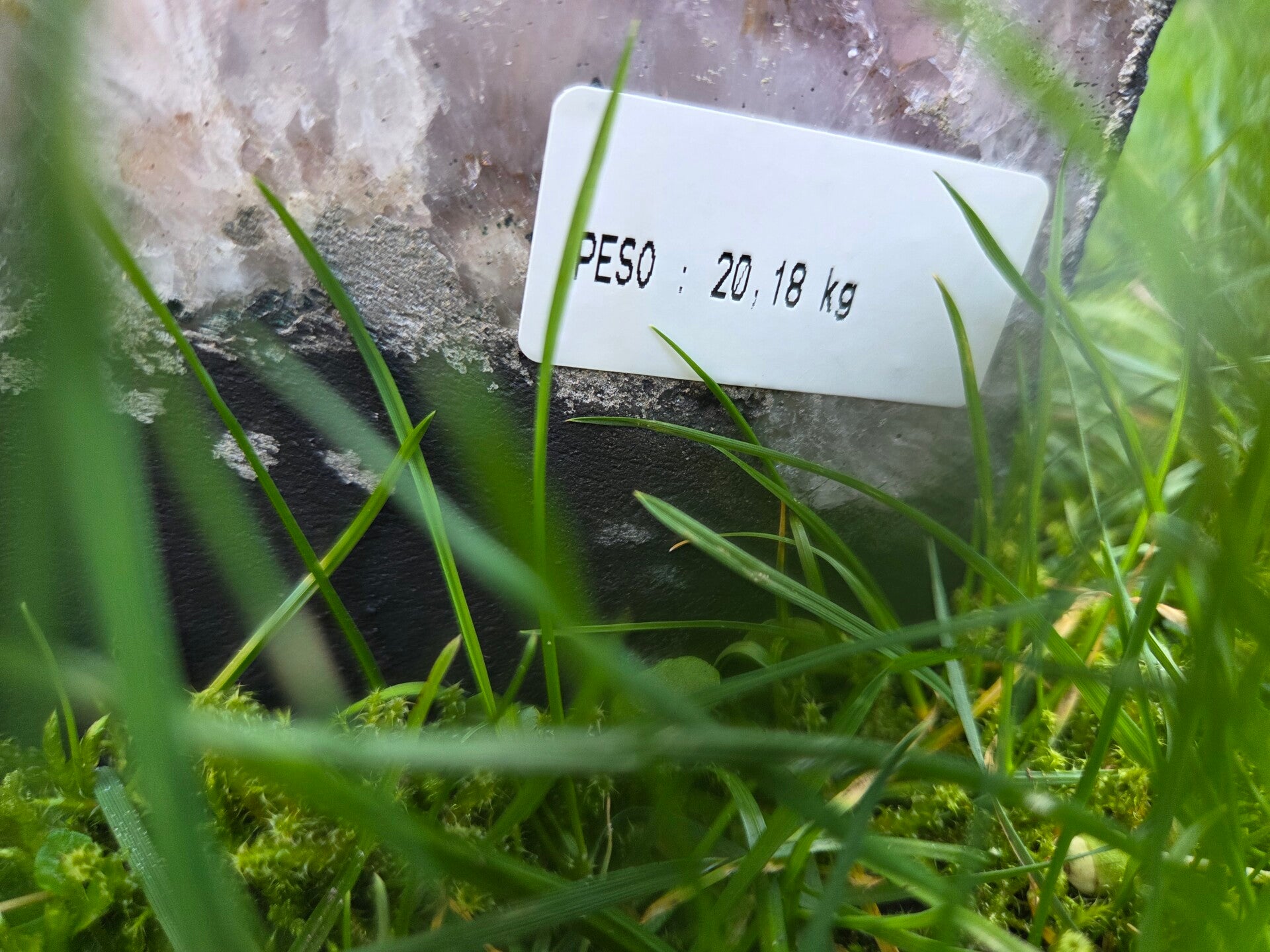 een amethist geode uit brazilië van 20,18 kilo en 56 cm hoog, 19,5 cm diep en 22 cm breed.