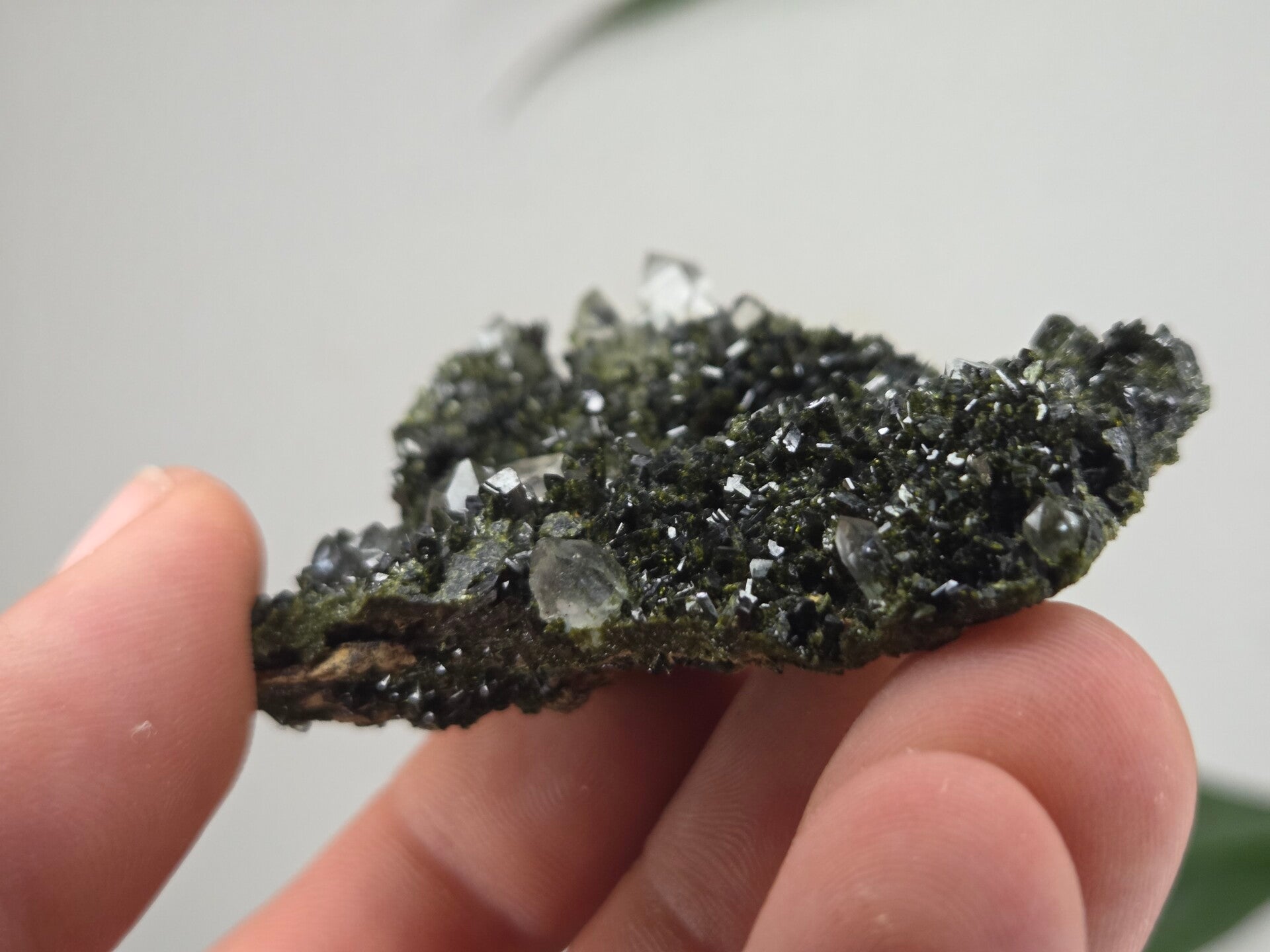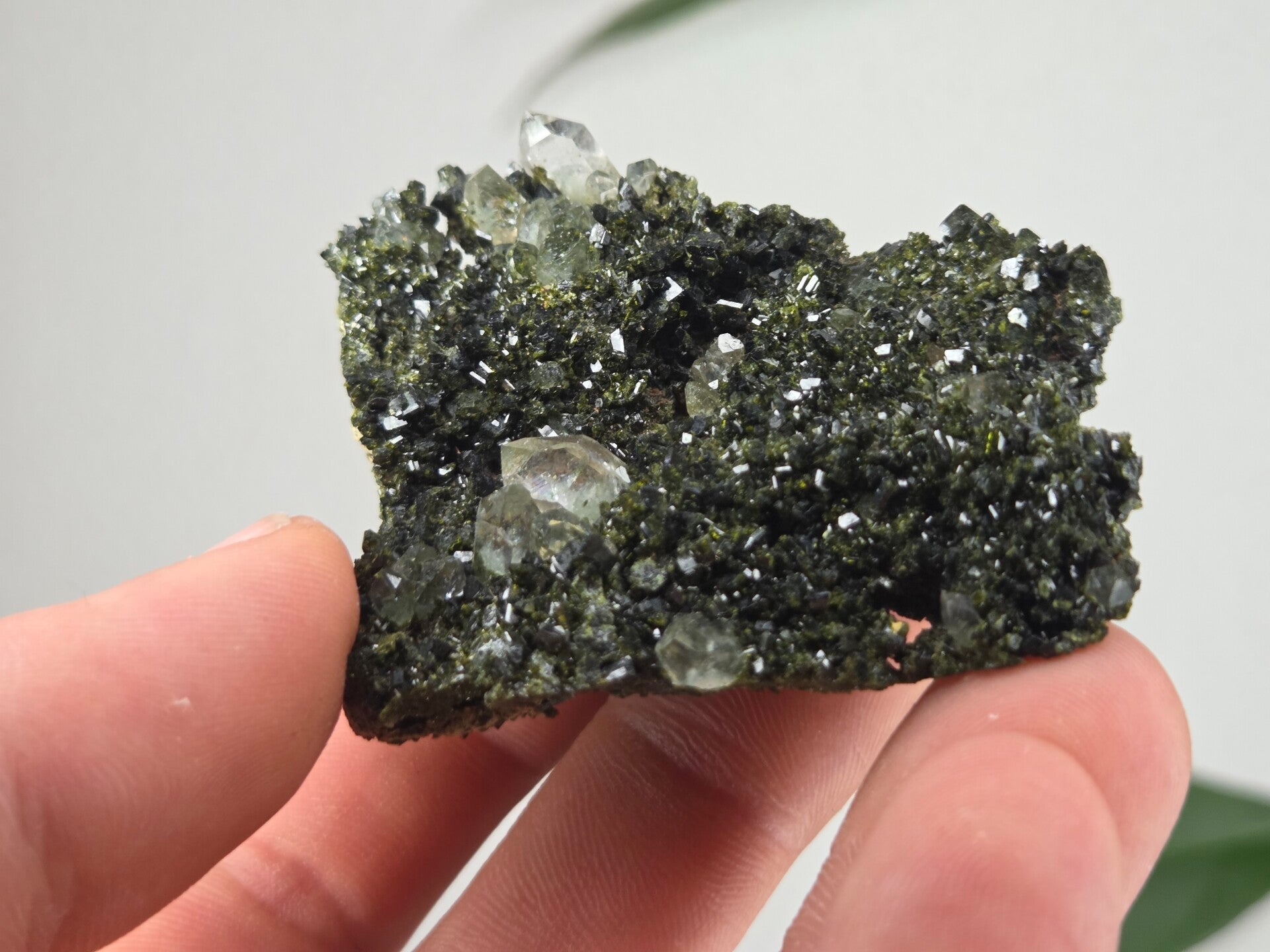 een stuk glanzende epidoot met heldere kwartsen uit semdinli, hakkari gebergte, turkije van 5,7 cm bij 4,9 cm bij 2,3 cm