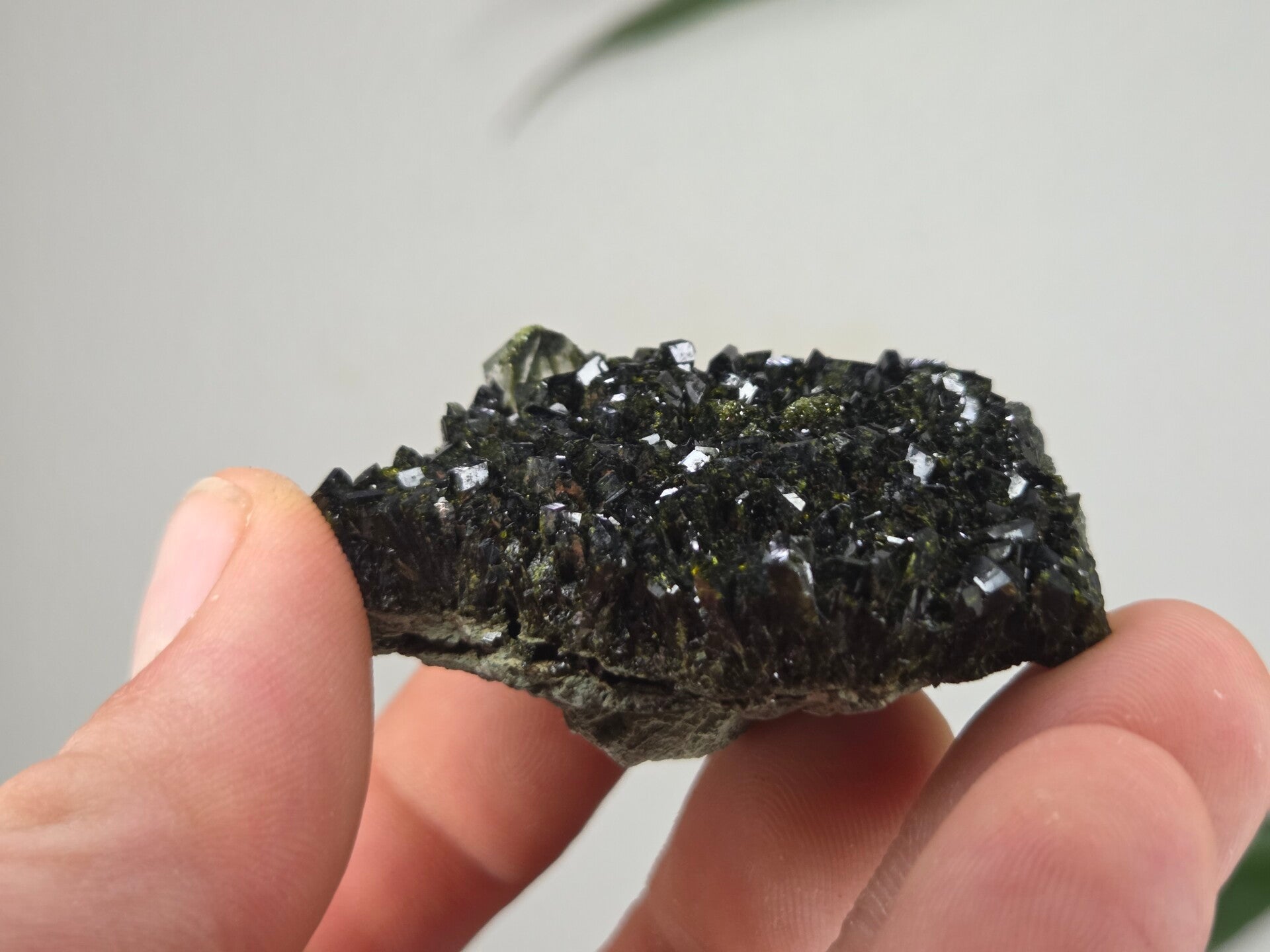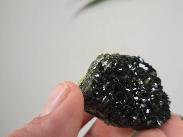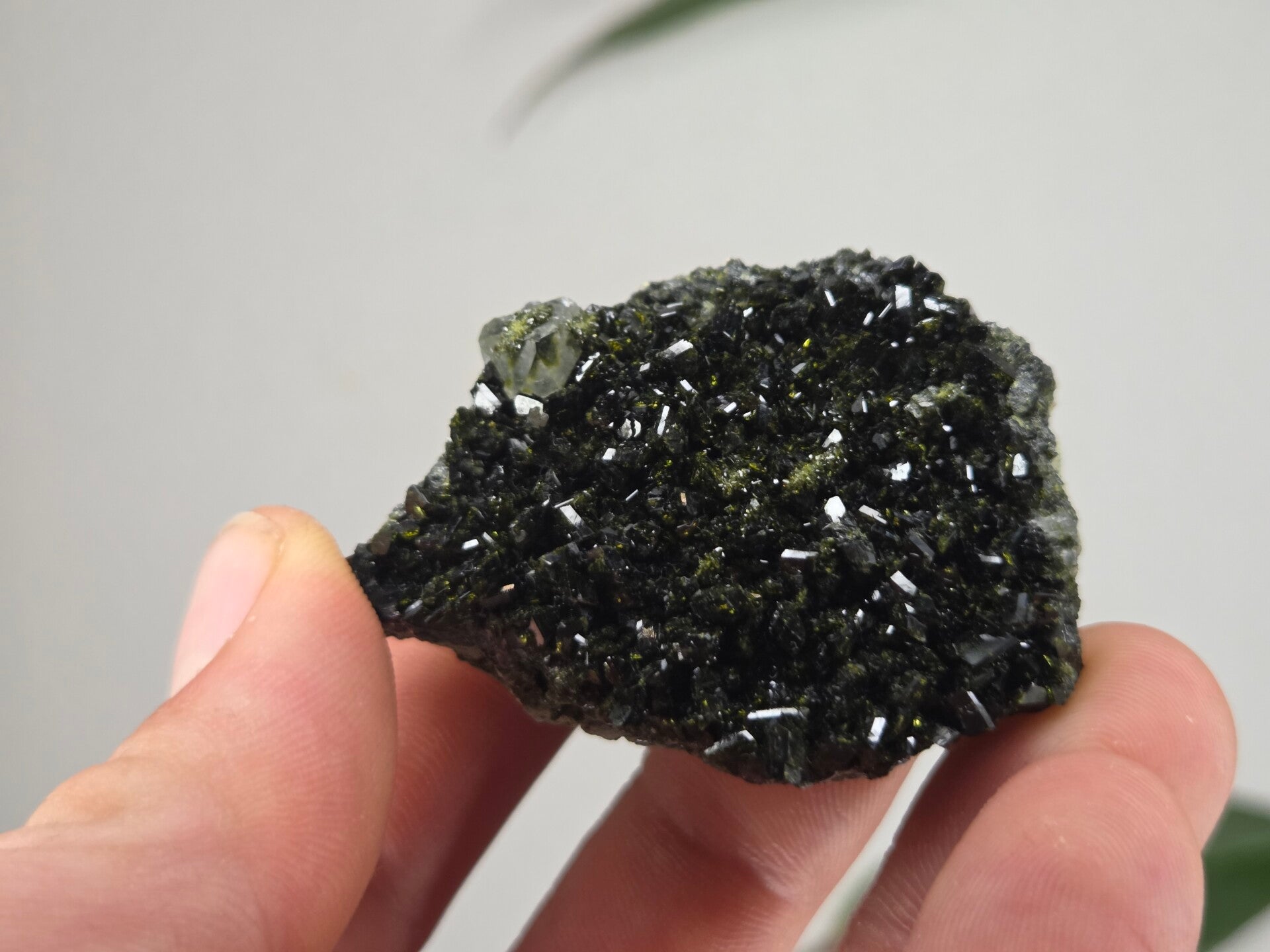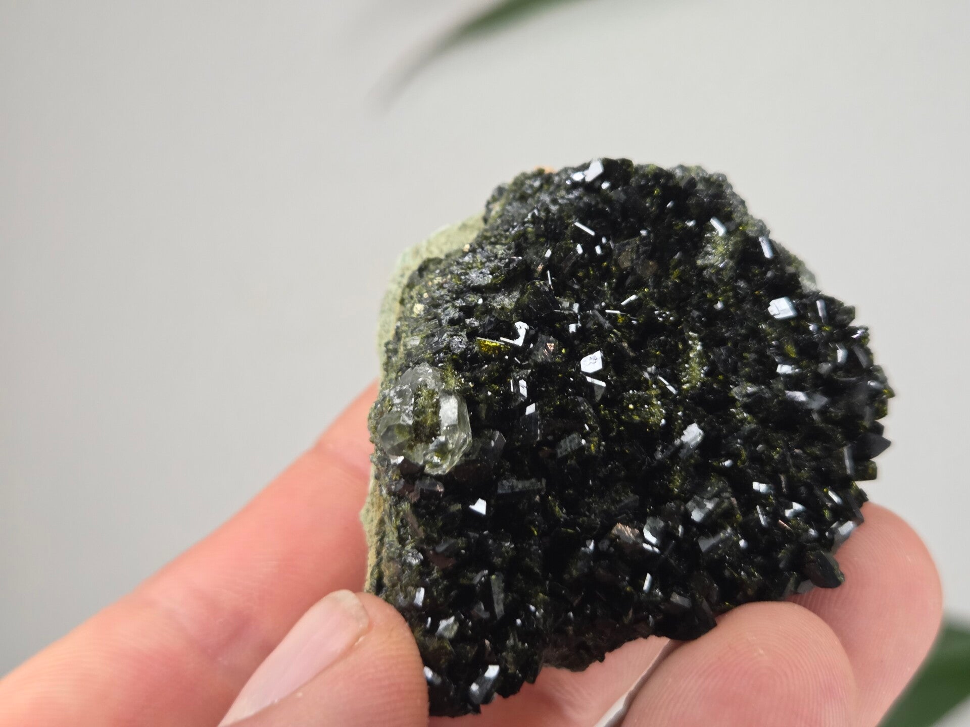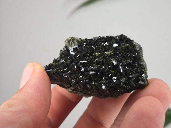 een stuk glanzende epidoot met heldere kwartsen uit semdinli, hakkari gebergte, turkije van 5,4 cm bij 4,5 cm bij 2,6 cm