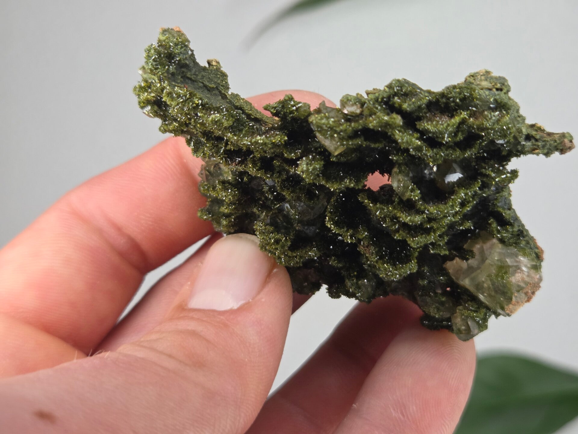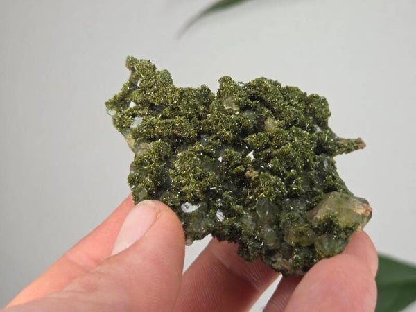 een stuk glanzende epidoot met heldere kwartsen uit semdinli, hakkari gebergte, turkije van 7 cm bij 5,1 cm bij 2,1 cm