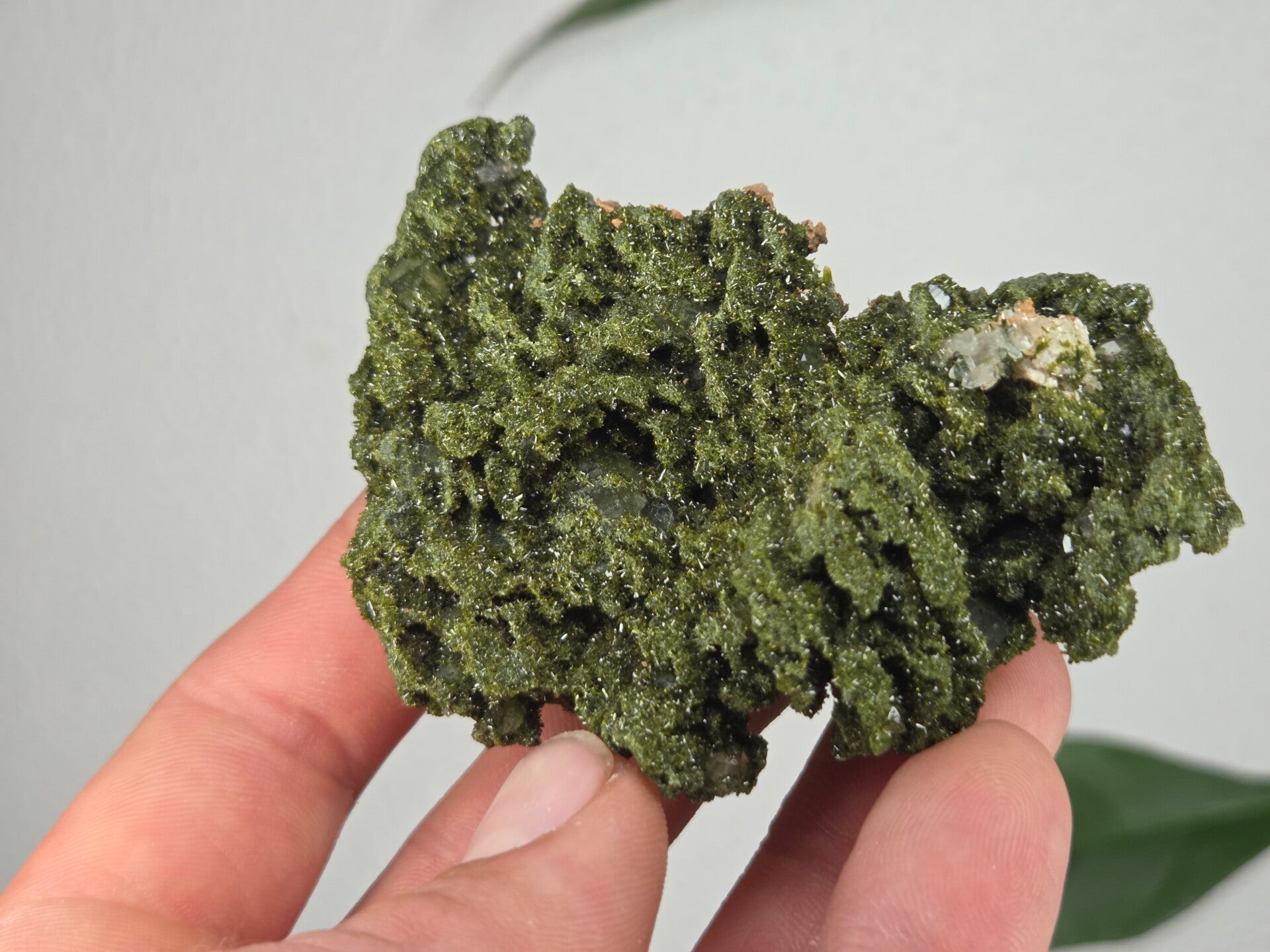 een stuk glanzende epidoot met heldere kwartsen uit semdinli, hakkari gebergte, turkije van 8 cm bij 6,2 cm bij 2,7 cm