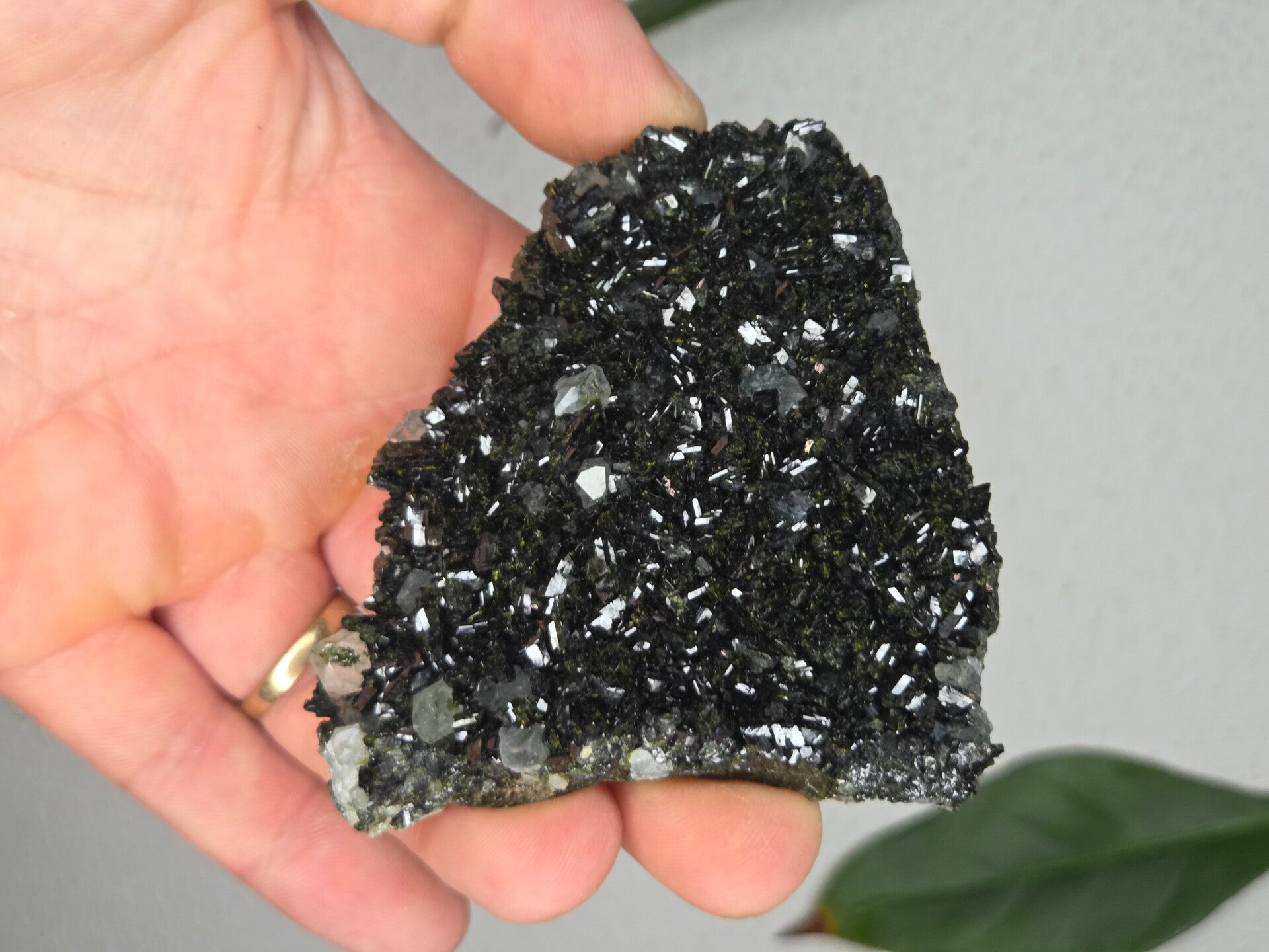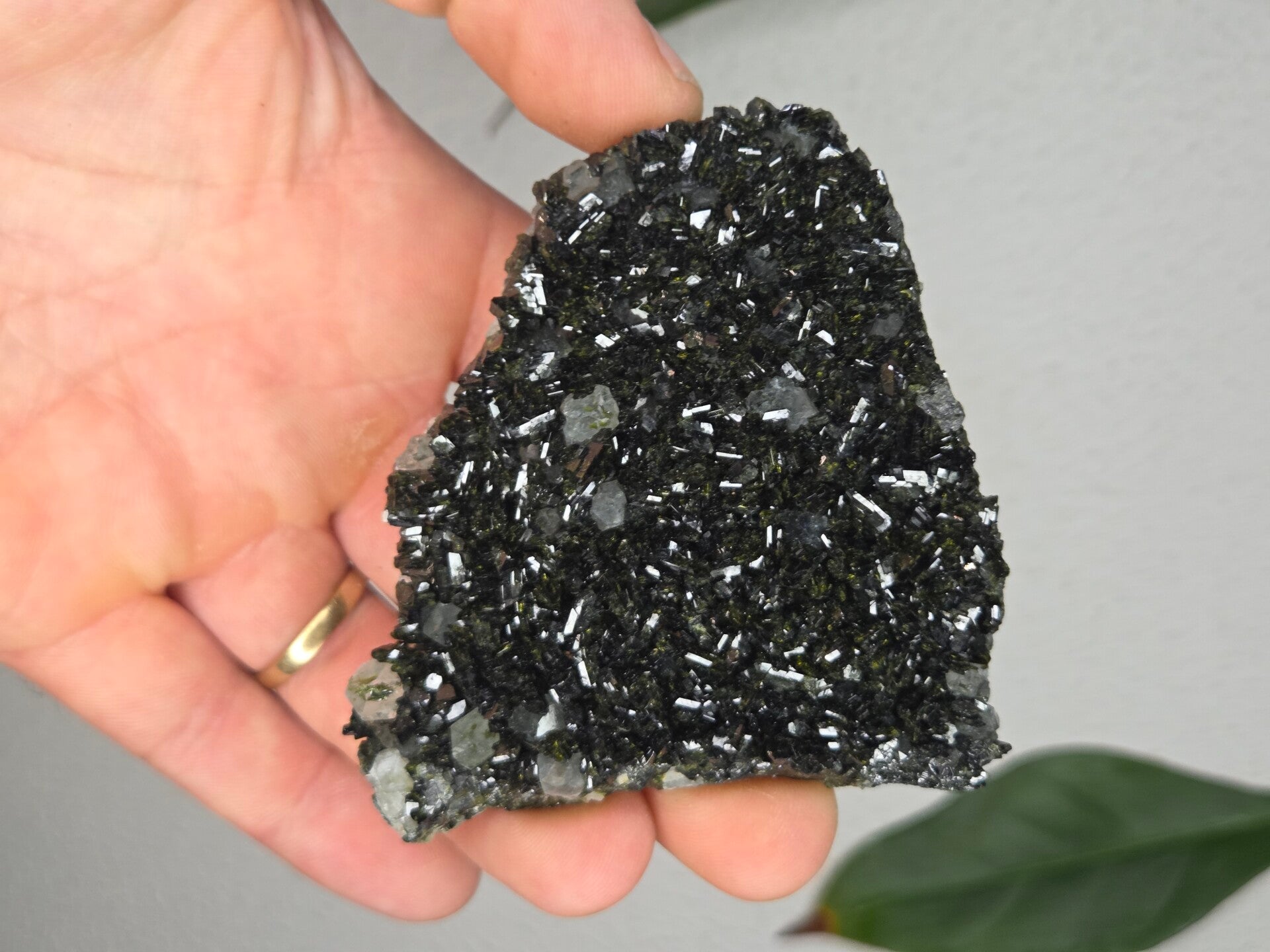 een stuk glanzende epidoot met heldere kwartsen uit semdinli, hakkari gebergte, turkije van 8 cm bij 7,5 cm bij 1,4 cm