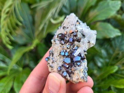 een stukje regenboog pyriet met kwarts uit de kalimantan mijn in borneo, indonesië van 3,6 cm bij 3,2 cm bij 2,6 cm